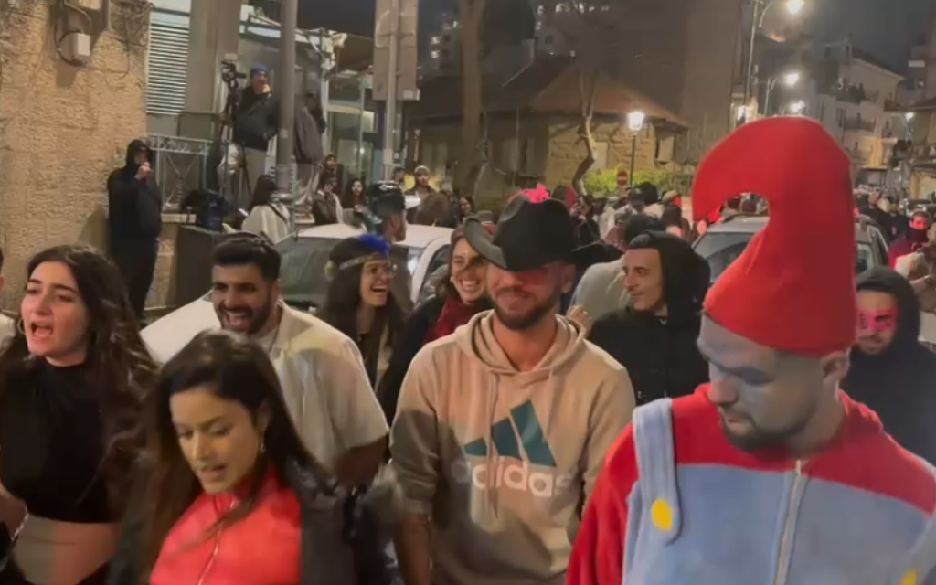 | Title | Flouting wartime restrictions, revelers party in Jerusalem streets for Purim’s final hours | Source | Times of Israel - World News |